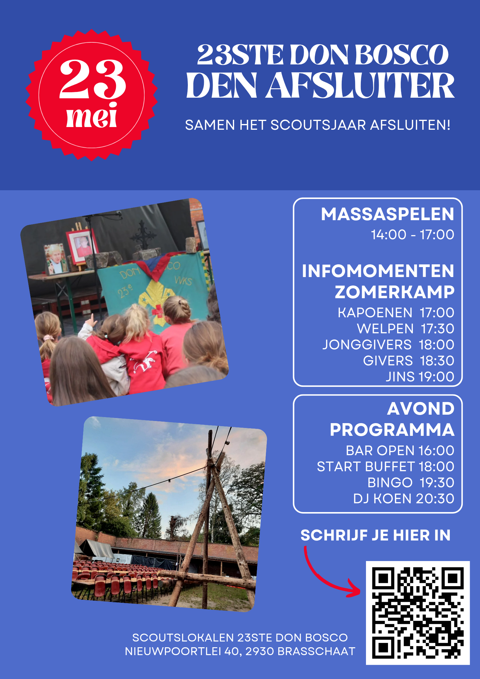 Het is feest! Je hebt je gereserveerde en meer dan verdiende plaats aan het hemelse kampvuur ingenomen. Al je scoutsvrienden die je al een tijdje miste, hebben je ongetwijfeld met open armen ontvangen. Er zal wat afgelachen en bijgepraat worden. Maar hoe groot de vreugde hierboven, hoe groot het verdriet hier bij den 23ste. Onze immer behulpzame steun en toeverlaat is voor eeuwig op kamp vertrokken. Want een scoutskamp, dat was voor jou sowieso al de hemel op aarde.